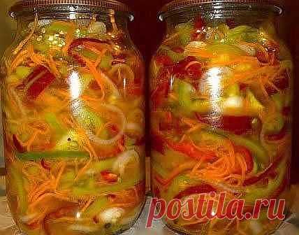 Все нарезать соломкой,залить маслом,уксусом,засыпать песком и солью,перемешать и дать настояться