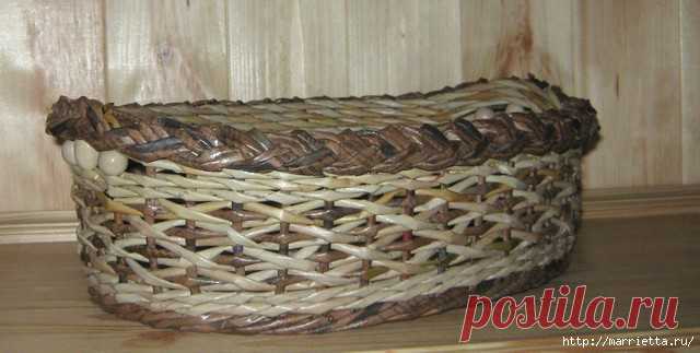ПЛЕТЕНИЕ ИЗ ГАЗЕТ. Корзинка оригинального косого плетения.