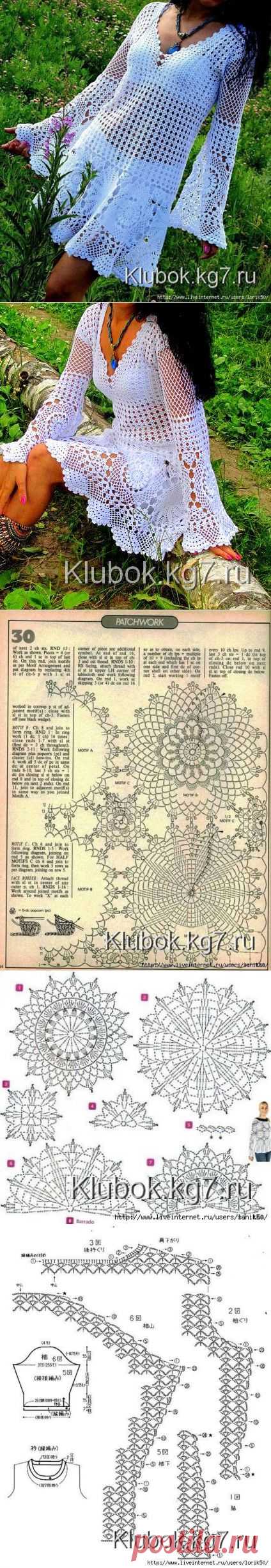 Чудесная белая туника крючком. Работа Оксаны Машковой - (Чёрной) | Клубок