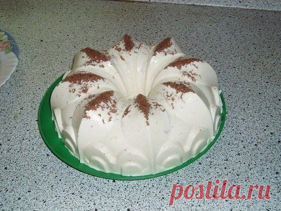 Желатин 30 г залить молоком (200 мл)и пусть разбухает,тем временем смешать творог(700гр) сметану (250гр)и сахар (200 гр) в однородную массу,затем туда растворенный желатин все смешать добавить фрукты какие есть и можно поломать печенье любое и всю эту массу в силик. форму и в холодильник на 2-3 часа. Ням-ням!!Для украшения на дно формочки натереть шоколад.