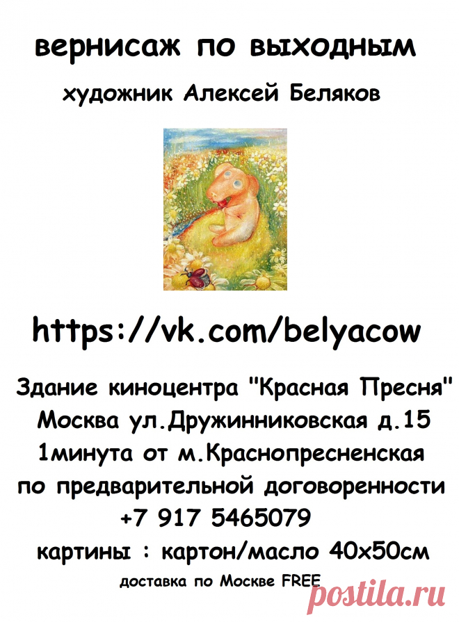 Дорогие друзья! Добро пожаловать на новую выставку примитивизма в антикафе "БАБОЧКИ" !https://vk.com/anticafebabochki Никакого модернизма! Никакого абстракционизма! Все эти "причудливые зверушки" героически выполнены в эксклюзивной технике "PALSEMTЮУК" маслом на холсте и поджидают Вас ежедневно с 12:00 до 0:00
