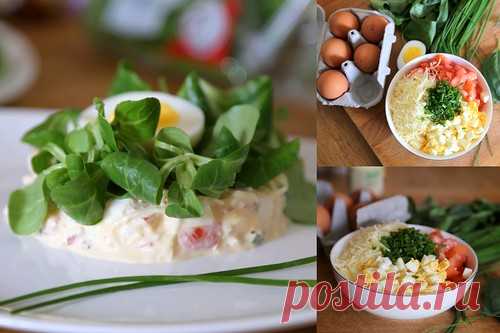 САЛАТ С ЯЙЦАМИ, СЫРОМ И ТОМАТАМИ