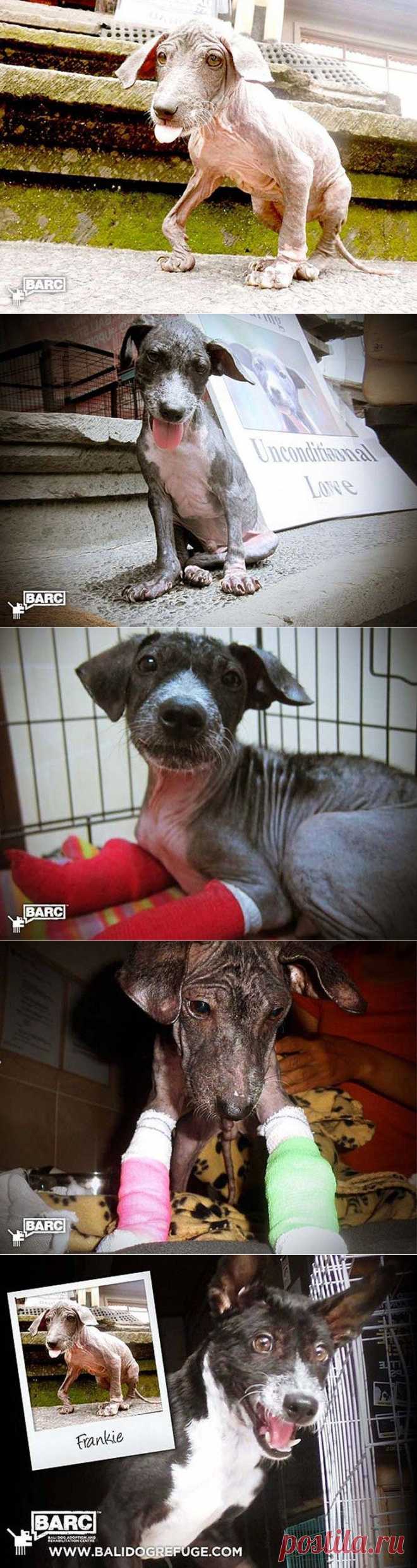 Спасение и невероятное преображение пса Фрэнки, найденного в канаве / Питомцы