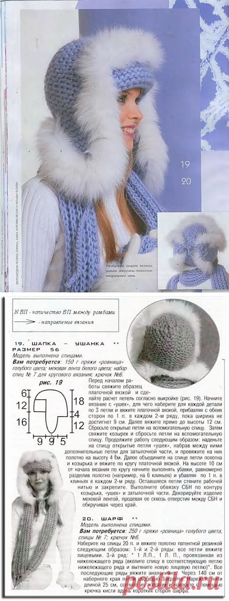Самая теплая шапка - ушанка с мехом. Вязание спицами.