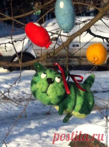 Котик-Арбузик(валяние) - зелёный,котики,котик,шарики шерстяные,подарок на любой случай