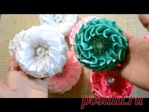Георгин канзаши, новый лепесток из лент 5см МК / diy satin ribbon flower, kanzashi