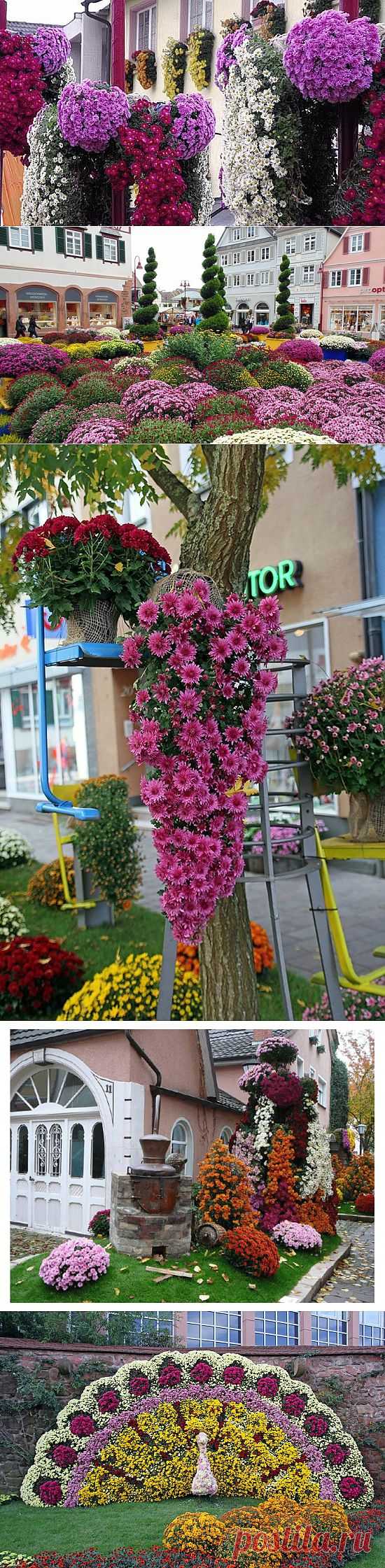Осенние хризомтемы на башне замка в Германии