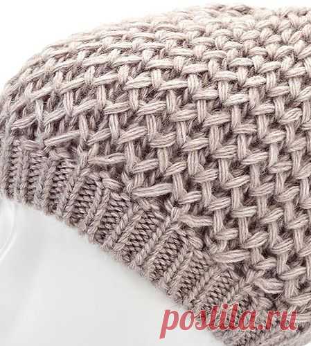Вязание энтерлак. Объемный берет плетеным узором. Описание вязания