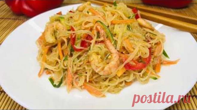 ФУНЧОЗА С КРЕВЕТКАМИ и овощами ПО-КОРЕЙСКИ. Блюдо с азиатским колоритом. ВКУСНО, СЫТНО, ПРОСТО! Сытное и очень вкусное блюдо из рисовой лапши, креветок и овощей может быть и салатом, и основным блюдом. Такая фунчоза разнообразит меню тех, кто не ест мясо или держит пост. Хорошо сбалансированный вкус соуса - секрет успеха этого блюда. По желанию Вы можете менять набор и количество овощей, зелени и специй. Это - дело вкуса! Фунчоза обязательно должна настояться, чтобы лапша ...