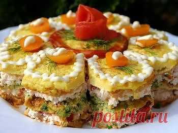 Рецепт - Закусочный торт новогодний. Как приготовить: салат, закуску, напиток, десерт, соус, выпечку, первое, второе блюдо. Фото рецепта