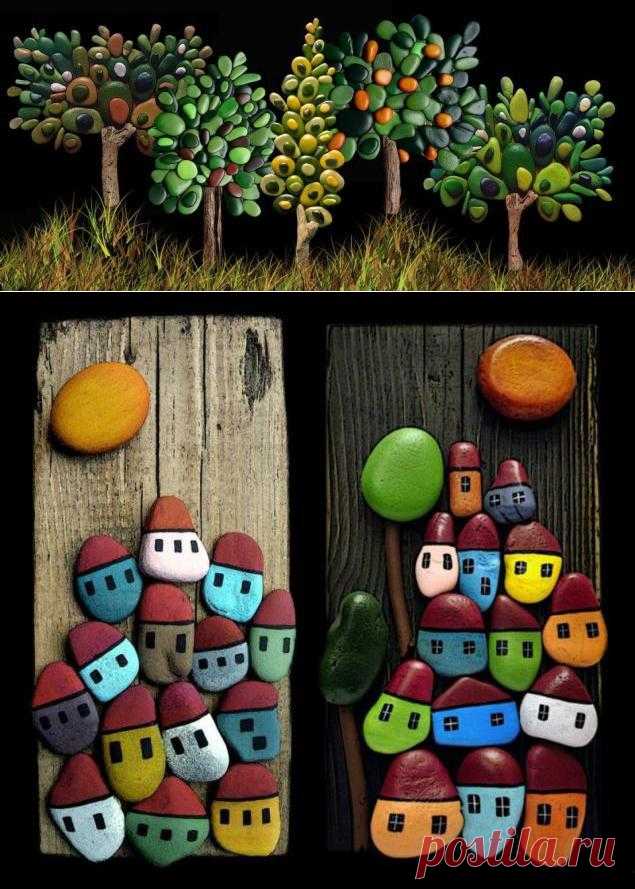Потрясающие работы из речных и морских камешков! Можно создать свои картины, из отпуска не забудьте привезти немного камушков.