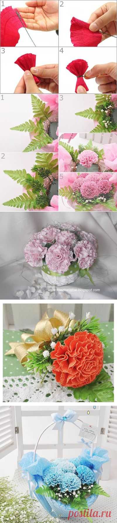 Корзина с конфетными астрами из гофрированной бумаги МК.