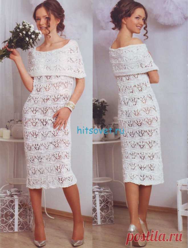 Красивое белое платье спицами