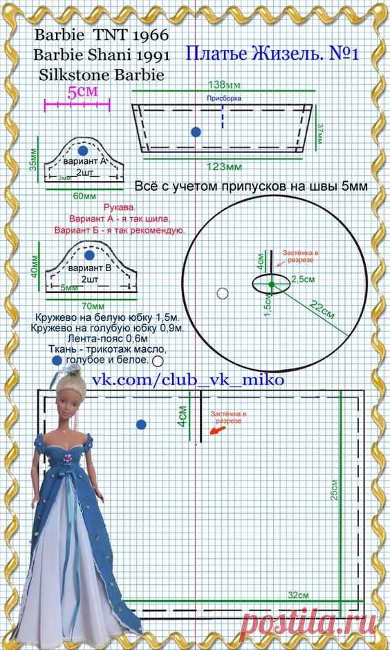 Королевские платья для кукол. Выкройки кукольной одежды.