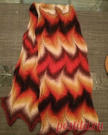 Трёхцветный шарф «Tocatta» волнистым узором. Спицами. / DAMские PALьчики. ru