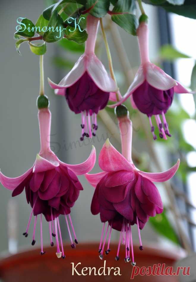 Ампельная средневетвящаяся среднерослая фуксия с яркими нарядными крупными махровыми цветами.