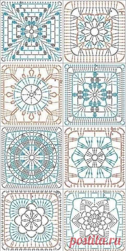 75 схем вязаных мотивов для лоскутного вязания | Клубок в кармане — вязание с нами | Дзен