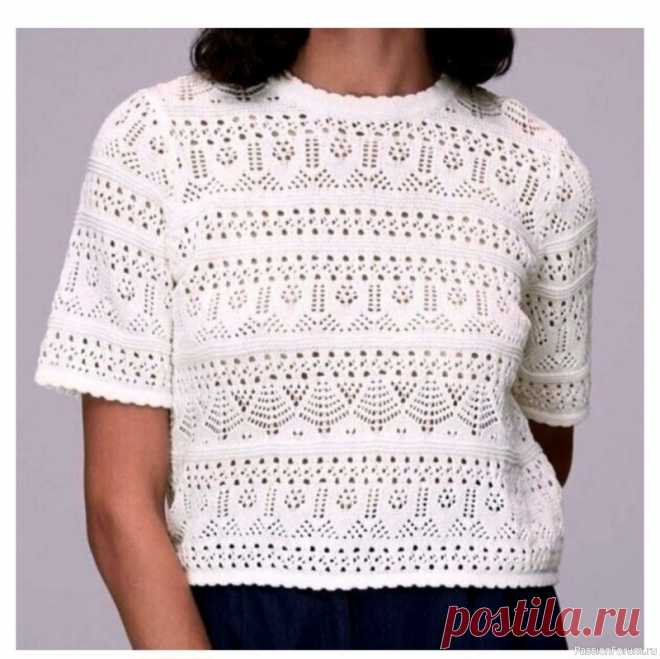 Стильный пуловер с цветами - все в ажуре (вязание спицами и крючком)