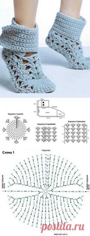 Женские домашние тапочки крючком » Ниткой - вязаные вещи для вашего дома, вязание крючком, вязание спицами, схемы вязания