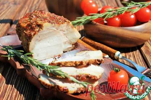Мясо режем кусками не тоньше 1 см,отбиваем.Режем мелко зелёный лук или петрушку,соль(щепоточку чтоб не пересолить),перчик(красный)и рубленный кунжут(я без него делала),в эту смесь льём соевый соус,мелко рубленный чесночок.Туда помещаем мясо и в холодильник на 2-3 часа.Потом помещаем в форму для запекания мясо,соус сливаем а гущу выкладываем на мясо и в духовку на 30-40 минут,но следим и протыкаем мяско,чтоб в сухари не превратилось!Вкус необыкновенный!