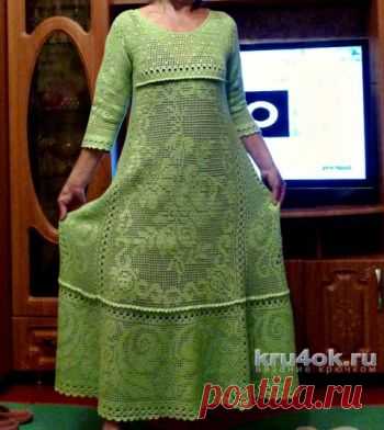 ПЛАТЬЕ КРЮЧКОМ С ЭЛЕМЕНТАМИ ФИЛЕЙНОГО ВЯЗАНИЯ