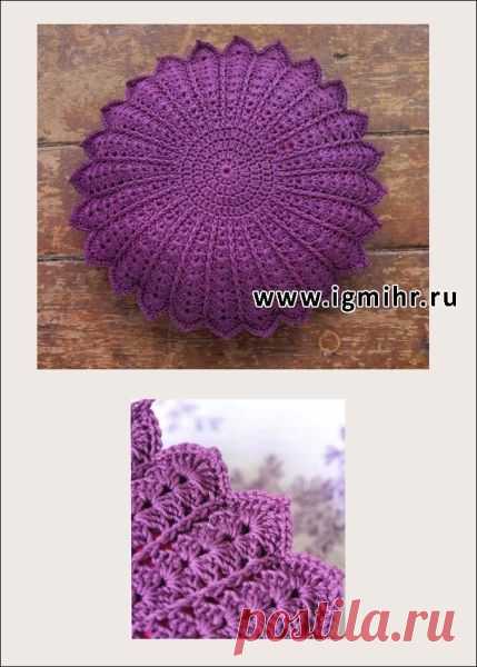Красивая круглая подушка - крючком (на диван или - на сиденье стула)