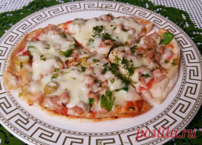Пицца из лаваша на сковороде Какую пиццу легче всего приготовить? Вот так чтоб совсем без заморочек? Предлагаю сделать ее на сковороде, а вместо возни с тестом, взять обычный тонкий лаваш)Рецепт на 2 пиццы:Лаваш тонкий - 2 шт.Начинка на ваш вкус, но в этом рецепте я укажу начинку, которая очень нравится мне.Креветки...