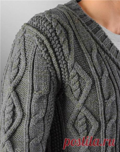 Очень красивый пуловер-реглан косами,связанный спицами.
