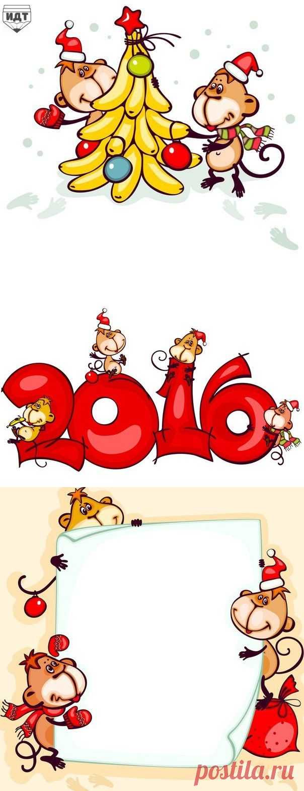 Картинки с новогодними обезьянками. Используйте их для своего творчества