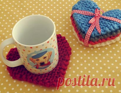 Подставки под чашки «Сердце» - схема вязания спицами. Вяжем Салфетки на Verena.ru Мастер-класс по вязанию на спицах подставок под чашки «Сердце»