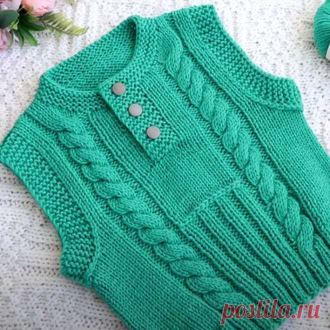 Мастер-класс "Шапочка спицами с косами и помпоном" -