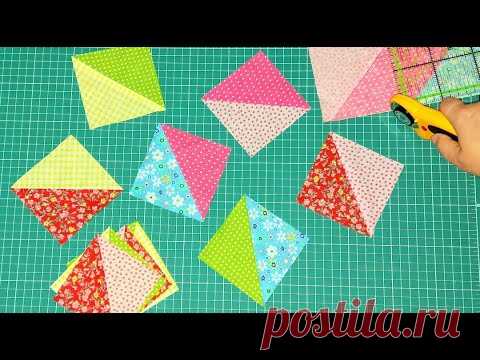 Пэчворк для начинающих.6 способов сшить блок "Квадрат из 2 треугольников". HST быстрым способом.