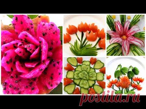 Красивый цветок из помидора! Украшения из огурца! Как красиво нарезать овощи!
