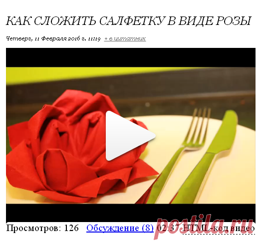 Как сложить салфетку в виде розы.