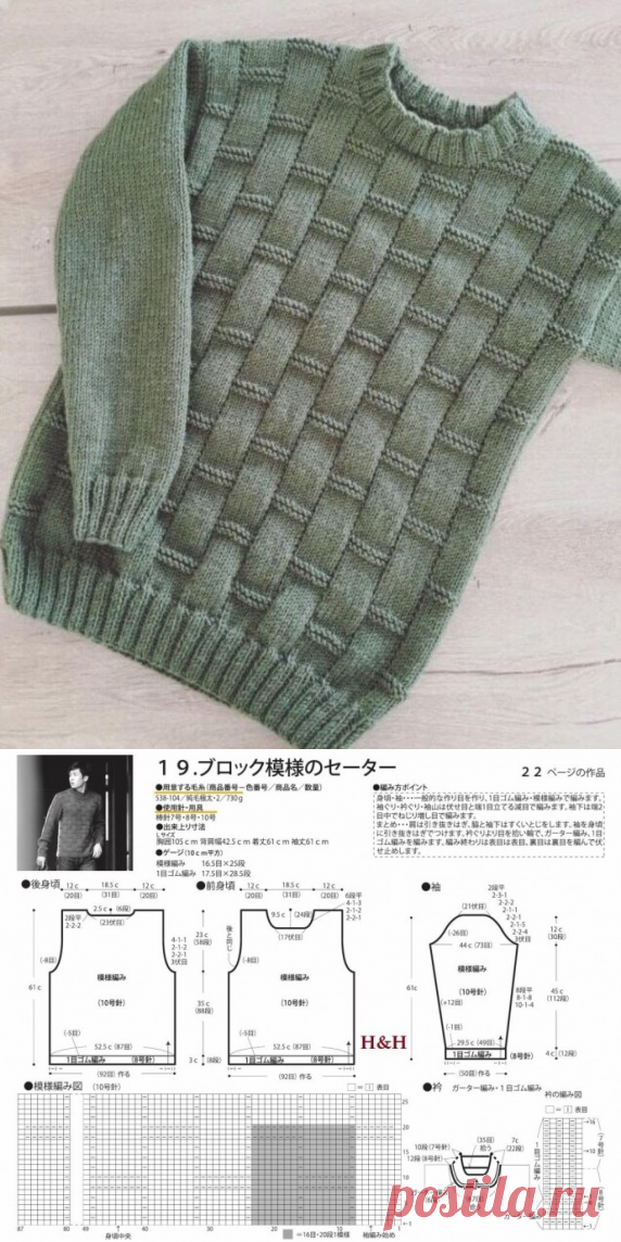 Мужской дежмпер Мужской джемпер с рукавом реглан связан ненавязчивым рисунком и имеет застёжку на горловине. Описание джемпера от дизайнера Pat Menchini переведено из журнала “The Knitter”.