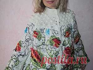 Делаем жакет «Утренняя свежесть» в технике крейзи-вул Материалы: пряжа разной фактуры и плотности разных цветов; водорастворимый флизелин; швейная машина; нитки; крючок; спицы. Вот сделала такой клешеный жакетик. Верх связан крючком, шишечками. Я не буду описывать ход работы. Просто выложу фото, так как смысл будет понятен. Тем более, что это не первое изднлие в технике крейзи-вул. Мне просто очень нравится процесс работы.