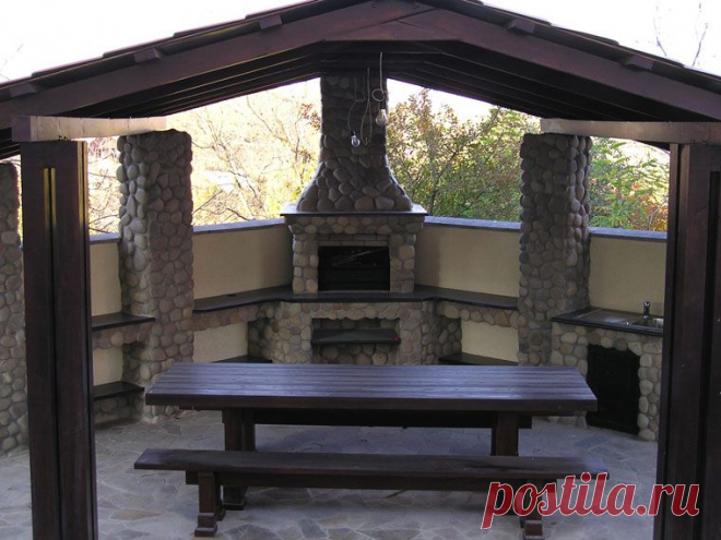 Осенью получил заказ от жены, построить беседку на даче.Строил один без чьей-либо помощи полтора месяца. Получился подарок жене- 40-летие нашей свадьбы праздновали в беседке. Из чего сделана беседка: фундаментом служат старые автопокрышки с дисками и без них, каркас собран их отходов тары (купил на дрова), стены и пол их старых дверей. Покупные материалы: ондулин на крышу, линолеум на пол, вагонка на стены, краска, лак, гвозди, саморезы.