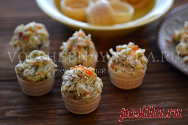 Рецепт: Кальмары, фаршированные крабовым салатом на RussianFood.com