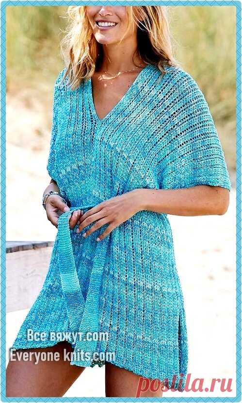 Платье с ажурными вставками Платье с ажурными вставками спицами. Весеннее женское платье с описанием