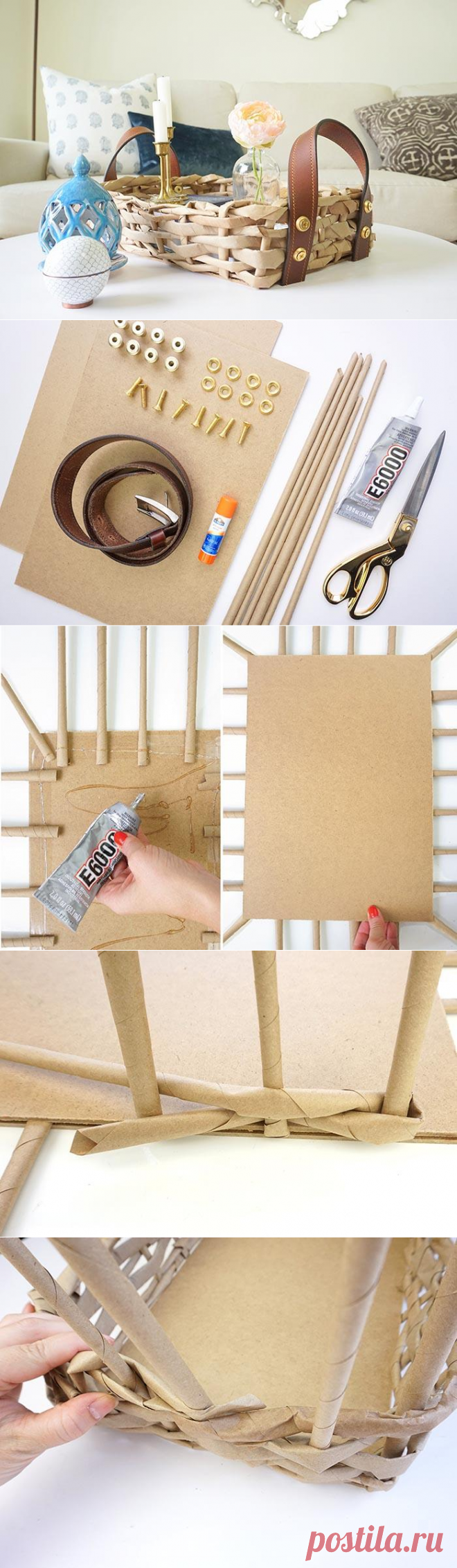 Эффектная корзина из коробки и газетных трубочек - Рукоделие