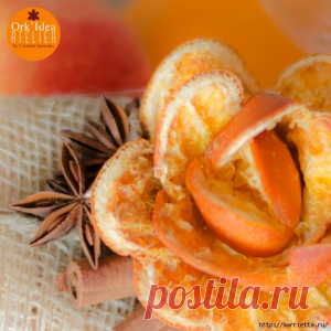 Розочки и подвески из апельсиновых и мандариновых корок.