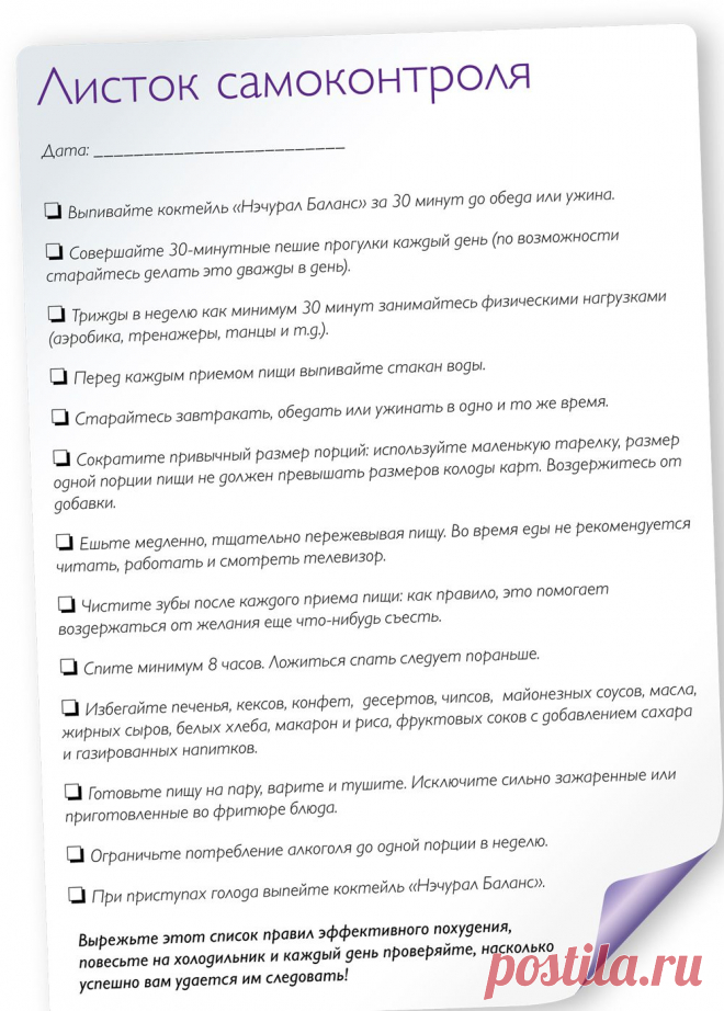 Листок самоконтроля - Oriflame cosmetics