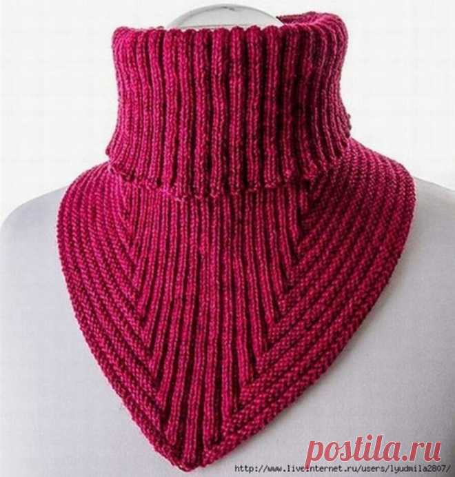Вязать снизу, начинать спицами большого размера, чтоб вокруг шеи ложилась, не сворачиваясь. Нитки 220 м-50 гр. Ушло почти 3 мотка, 50 шерсть-50 акрилан. Набрать на круговые спицы 184 петли, к-во должно на 8 делиться, замкнуть в круг. Каждый ряд сxемы вязать 3 раза. В начале и в конце равномерно, пока на спицаx не окажется резинка 2×2.