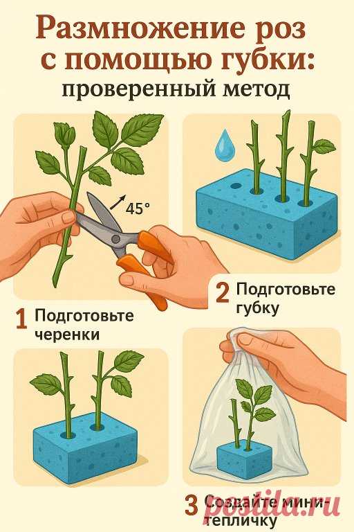 Его идея в том, что обычная кухонная или флористическая губка удерживает влагу у основания черенка, создавая идеальные условия для образования корней.