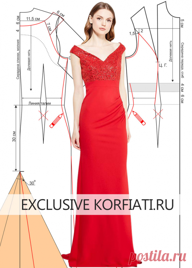 Как сшить праздничное платье со шлейфом - выкройка А. Корфиати