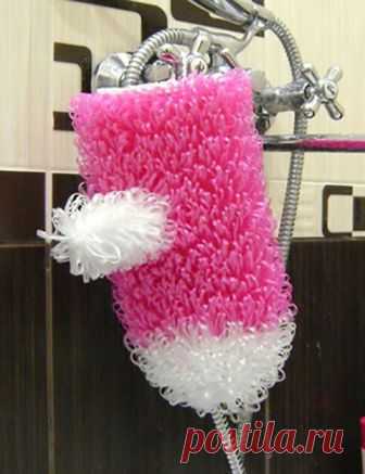 Не хотите обвязать мочалку? Интересный вариант вязания для ванной. Видео мастер-класс.