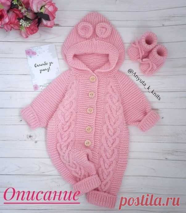 Комбинезон с капюшоном Комбинезон связан регланом сверху вниз, с классическим ростком укороченными рядами на размер 0-3 месМАТЕРИАЛЫ: пряжа Пехорка "Детский каприз "в 2 нити (расход 250гр), спицы 3,5мм и 3,0 для резинкиПЛОТНОСТЬ: платоч вязка 19п - 10см, узор 20п - 7,7смОТВЕРСТИЯ ДЛЯ ПУГОВИЦ через 14 рядов, для...