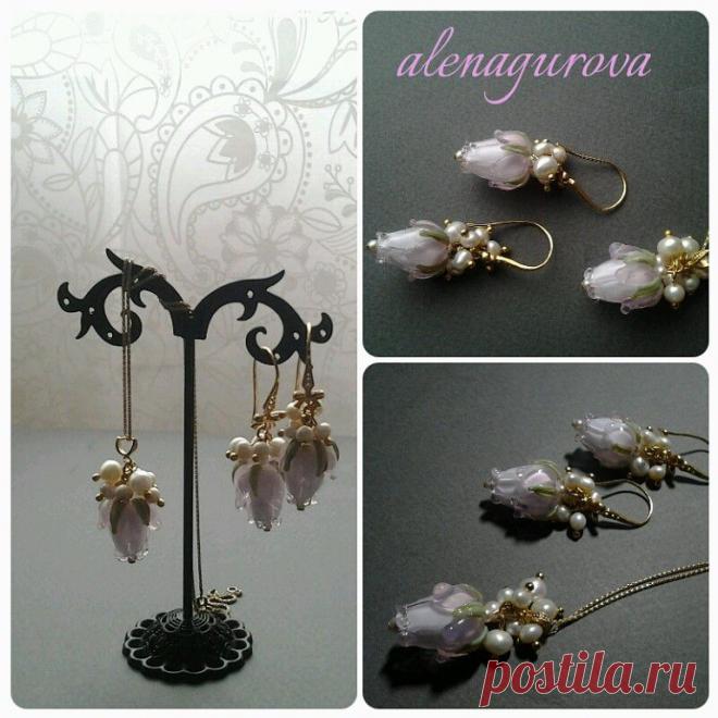 комплект из муранского стекла и жемчуга, фурнитура позолота 24к гиппоаллергенно -2300