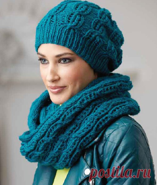 Узор для шапки спицами. Связать модный комплект шапку и снуд объемным узором | Я Хозяйка