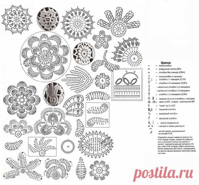 Тема 2. Схемы листиков крючком ирландское кружево. Статья автора «IQknitting» в Дзене ✍: